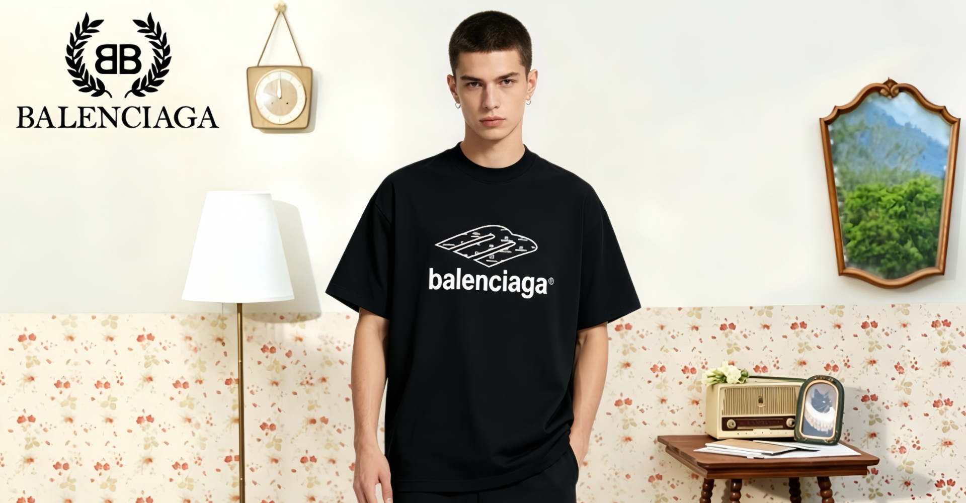 Balenciaga Baju-T lengan pendek potongan longgar sederhana dengan bahu jatuh, koleksi tetap 26SS